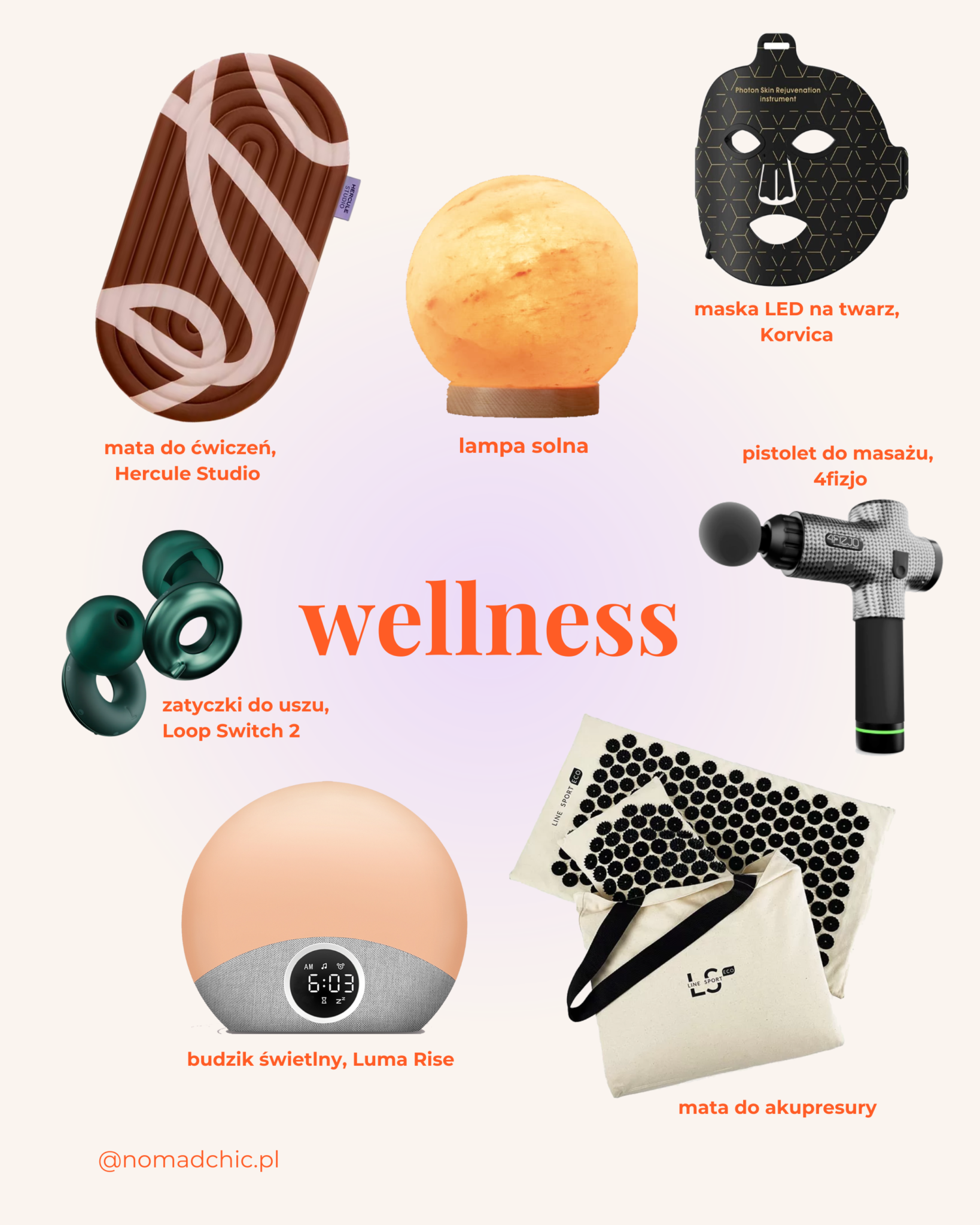 Wellness to nie luksus – to codzienne mikrodecyzje, które budują energię, regenerację i równowagę. W tej sekcji znajdziesz narzędzia, które pomagają lepiej spać, szybciej się regenerować, redukować stres i świadomie dbać o ciało. Łączą funkcjonalność, design i realne działanie, dzięki czemu wellness staje się prosty, piękny i dostępny na wyciągnięcie ręki. To prezenty, które naprawdę poprawiają jakość życia.