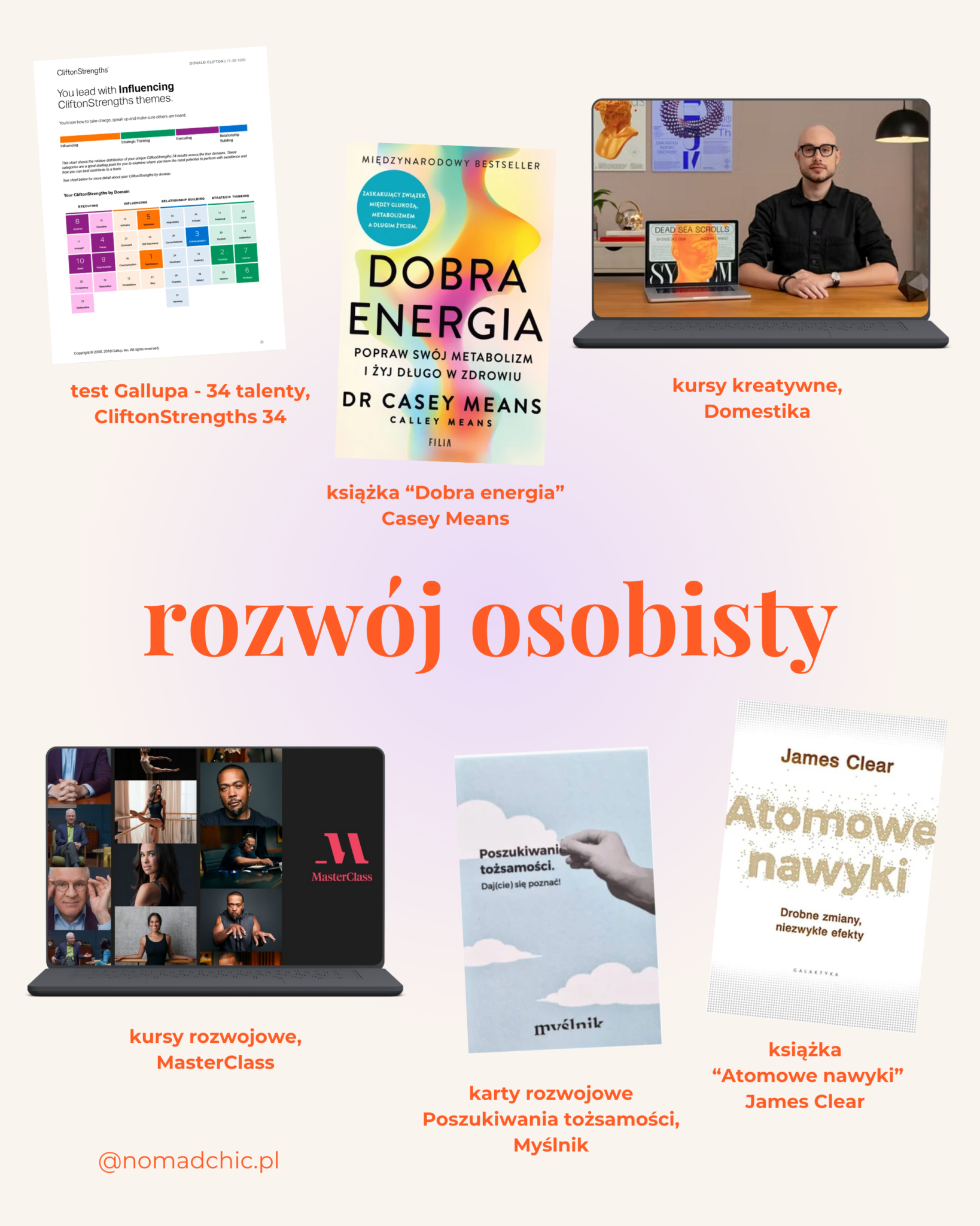 W tej kategorii zebrałam pielęgnacyjne perełki, które naprawdę robią robotę – od produktów z krótkim, czystym składem, po narzędzia wspierające regenerację, masaż i codzienne rytuały glow. To rzeczy, które są nie tylko piękne, ale też skuteczne: działają, ułatwiają dbanie o skórę i dają ten mały moment przyjemności w ciągu dnia. Idealne na prezent dla kogoś bliskiego albo… dla siebie.